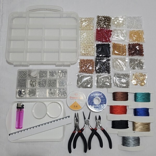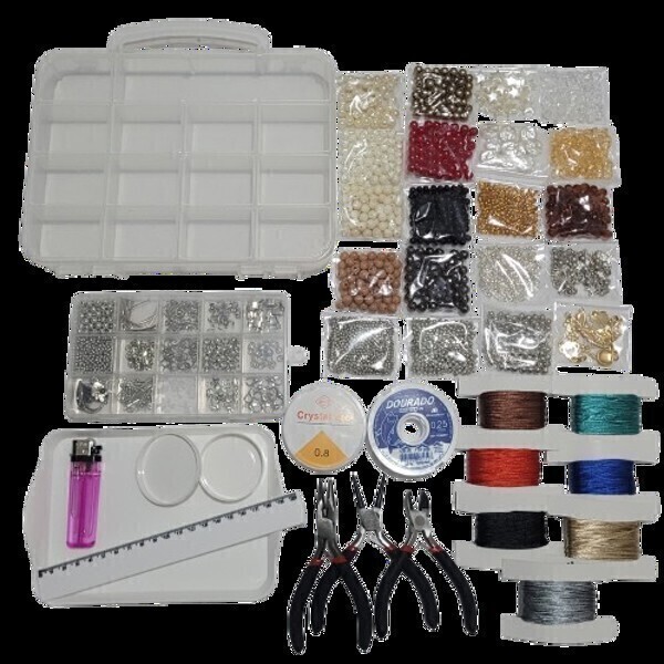 O Combo Iniciante Completo reúne todos os materiais essenciais e as ferramentas básicas para criar pulseiras, colares, brincos e muito mais — tudo cuidadosamente selecionado nas quantidades ideais para quem está dando os primeiros passos nesse universo criativo